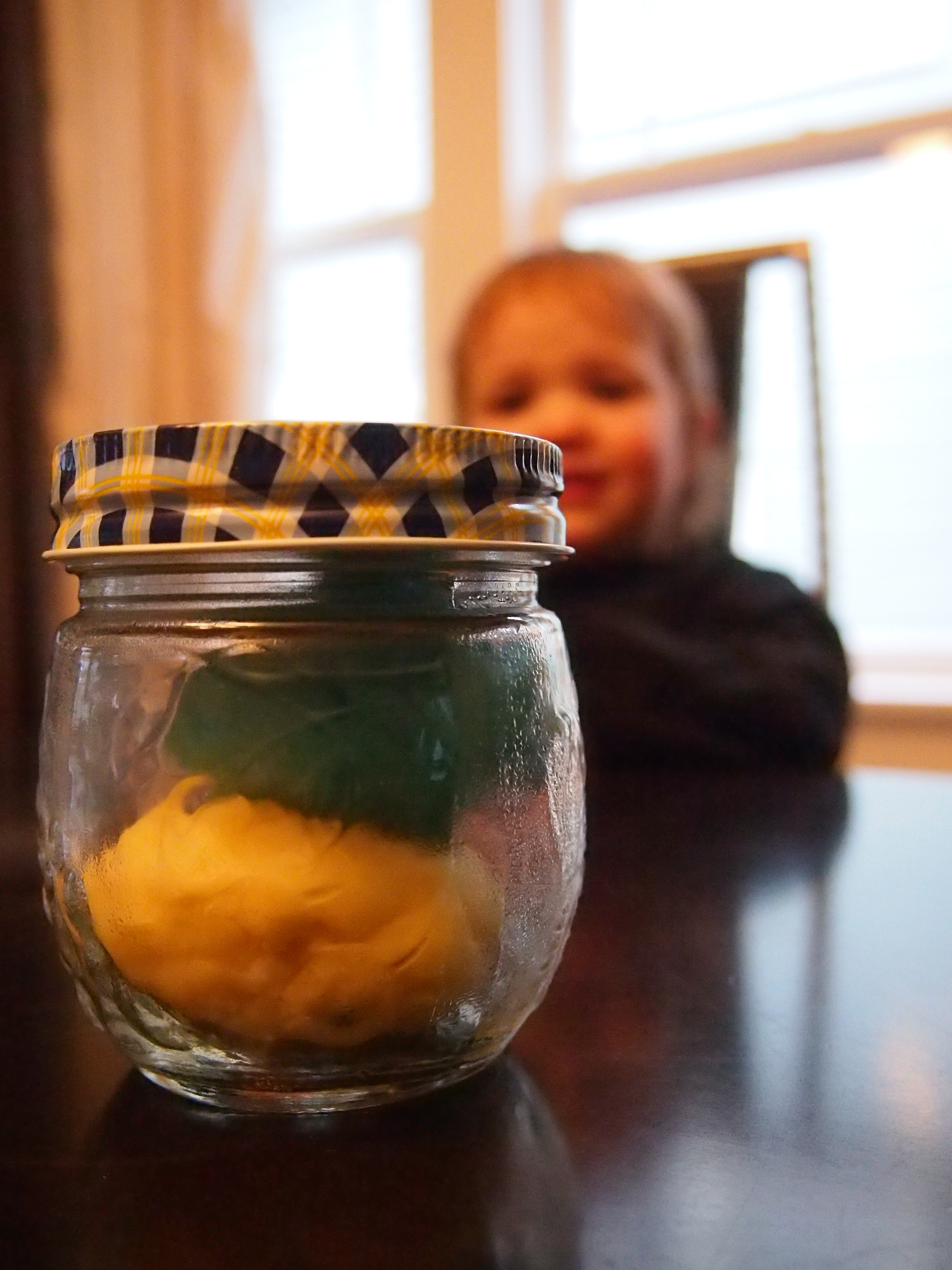 And in the spirit of sharing, I doubled my batch to give some to a friend and her toddler. A canning jar with a cute lid made a lovely storage container.