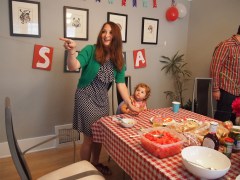 This is commonly done at weddings, but it’s a fun and easy way to do something special for your guests. The key here is to pick something that’s unique, but not labor intensive. I did Pimm’s cups at Szaba’s first birthday, and they were perfect. This year I tried watermelon mojitos, and I wish I would’ve made a pitcher instead of trying to mix them individually. Once guests started arriving and the craziness of BBQing, present opening, and cake presentation ensued, only a handful of guests got a mojito before my attention was diverted elsewhere.