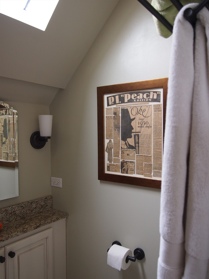 For instance, when we remodeled our bathroom, we found a newspaper from 1930 layered among the floor boards, which gave me an idea …