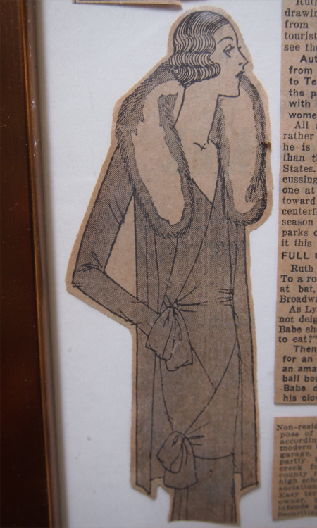 I clipped out the paper masthead, date, and a few ads and stories that tickled my fancy about the time period. Then I arranged my clippings on a piece of uncut matting and popped it into a basic frame. Simple, and now I have one-of-kind art piece with interest and meaning.