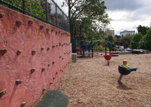 We recently tried Bayview-Kinnear Park (below Kerry Park) on Queen Anne hill in Seattle. The play gear was completely different from anything Szaba (or I) had seen before, and we had a ton of fun exploring. Plus, there are fantastic views and arguably one of the city’s best slides.