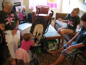 Standing by my side: Szaba (well, she was crawling actually), my hilarious nephew Aaron, my sweet niece Ali, and Sue’s phenomenal mother, Shirley.
