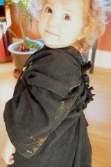 It’s (a) easy, (b) takes two minutes—no sewing—and (c) lets your kid go all Jackson Pollock on that paint and paper, worry free.
