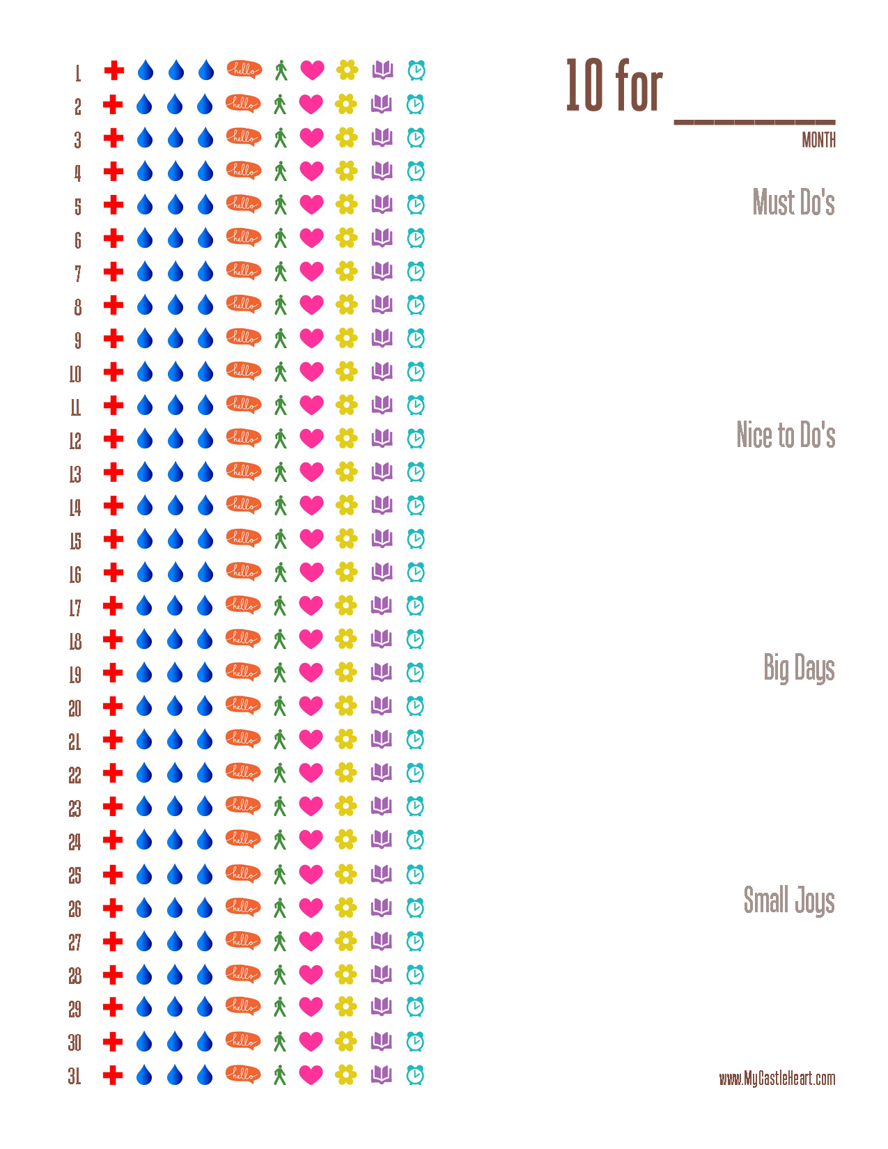 Before the holidays descend, I’ve made one for October. It’s 10 quick and easy things I want to do for myself every day this month. I’m calling it my “10 for Month 10,” and I thought I’d share it, in case any of you want to do it along with me.