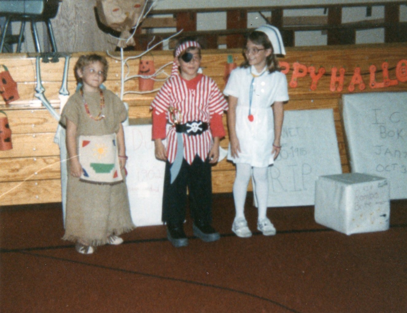 I found a white prom dress at the thrift store, stood in the tub, and dumped profuse amounts of fake blood on my head. Then I proceeded to take the ‘L’ and freak out a bunch of evening commuters. Ah, memories …