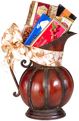Splurge on something nice, or check your local discount store. (Ross and even Big Lots are great for this.) Then fill it with teas and honey, hot chocolates and marshmallows, coffees and creamers, you get the idea.