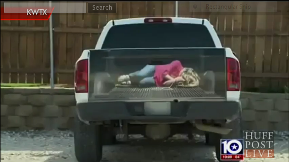 - Female employee agrees to be photographed for a realistic decal that makes it look like a woman is ganged and bound in a vehicle’s trunk.